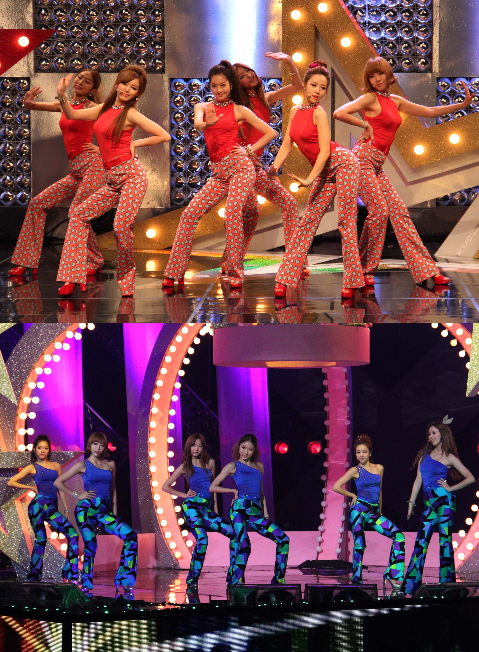 달샤벳은 최근 신곡 '블링블링' 무대서 몸매가 드러나는 플레어 팬츠를 입어 '뉴 디스코룩'을 선보이고 있다.