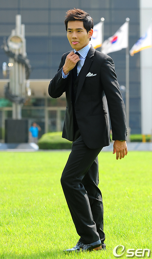 온주완이 포토존으로 향하며 넥타이를 만지고 있다. / rumi@osen.co.kr