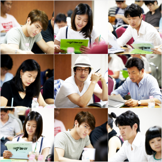 현재 본격적인 촬영이 진행 중인 KBS 새 월화극 ‘포세이돈’의 주역들인 최시원, 이시영, 이성재, 한정수, 진희경, 장동직, 길용우, 박성광 등이 대본 연습을 위해 한 자리에 모인 것.