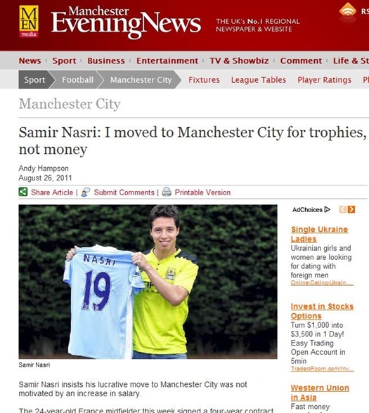 나스리는 26일 밤 맨체스터 이브닝 뉴스를 통해 "돈이 이적을 결심한 중요한 이유는 아니었다. 다른 사람들이 자신만의 생각을 가지는 것은 이해한다. 하지만 나는 내가 선택한 이유를 알고 있다. 축구 때문이었다"고 설명했다.