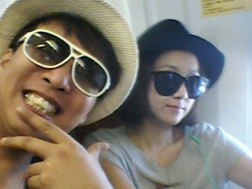 사진 속에 박준형-김지혜는 선글라스와 모자를 쓰고 카메라를 응시하고 있다.