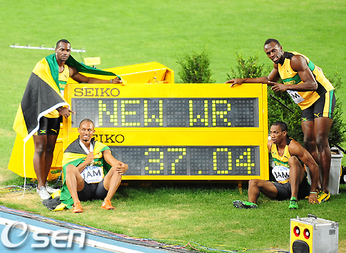 네스타 카터를 시작으로 마이클 프레이터, 요한 블레이크, 우사인 볼트로 이어 달린 자메이카 계주팀은 4일 저녁 대구 스타디움서 열린 대구 세계육상선수권대회 남자 400m 결승서 37초04로 가장 먼저 결승선을 통과하며 우승을 거뒀다.