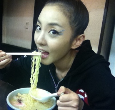 그룹 2NE1의 멤버 산다라박이 일본서 라면을 먹는 사진을 공개했다.