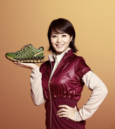 <사진> 프로스펙스W의 광고 모델인 김혜수가 헤롯 스페셜 리미티드 에디션 W POWER 417제품을 들고 포즈를 취하고 있다.