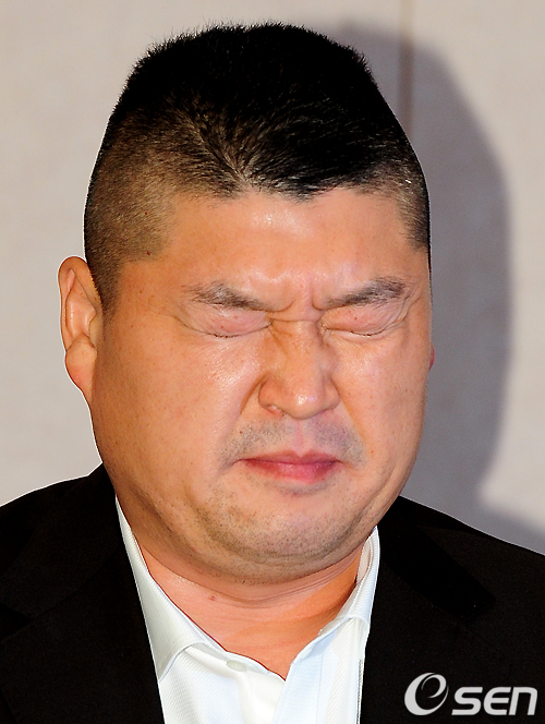 강호동이 회견 도중 두 눈을 감고 생각에 잠겨 있다. /jpnews@osen.co.kr