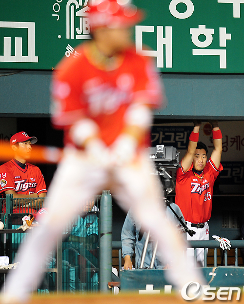 9회초 선발에서 제외된 KIA 이범호가 경기를 지켜보고 있다. /jpnews@osen.co.kr