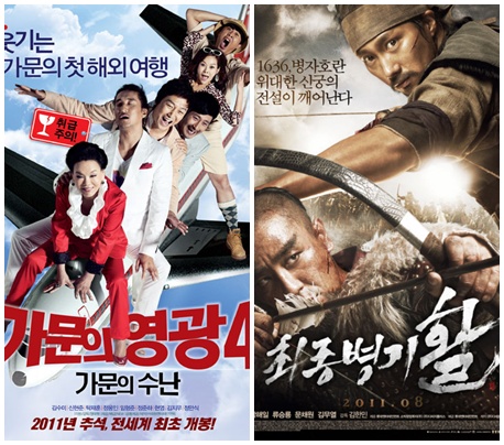 '가문의 영광4'와 '최종병기 활'이 추석 연휴부터 현재까지 1, 2위를 나란히 지키고 있는 가운데 흥행 양강체제가 언제까지 이어질 수 있을지 관심이 모아지고 있다.