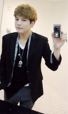 사진 속 신동은 금발의 베이비펌을 한 모습이며 살이 많이 빠진 것과 최근 한 쌍커풀수술로 부쩍 잘생겨진 얼굴을하고 있다.