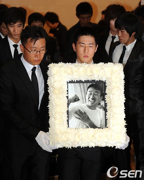 故 최동원의 아들 최기호씨가 고인의 영정을 들고 운구차로 향하고 있다. / sunday@osen.co.kr