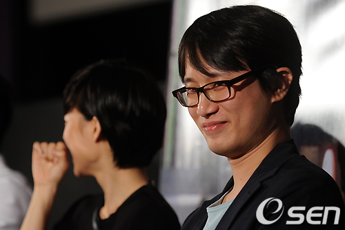 배우 송새벽이 이난 감독이 이야기를 들으며 미소를 짓고 있다. / sunday@osen.co.kr