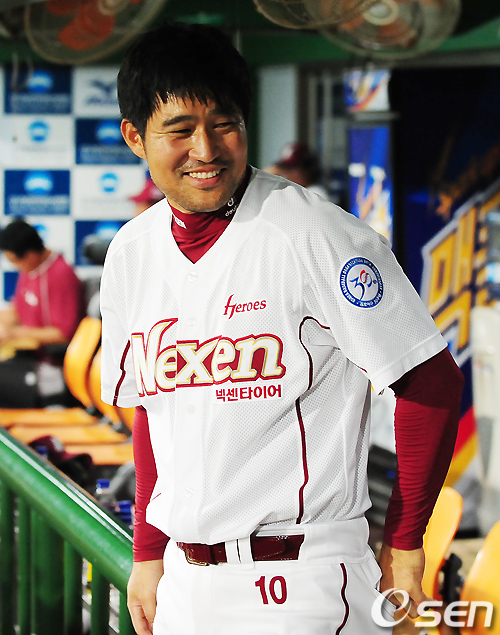 8회초를 마치고 덕아웃에서 넥센 이숭용이 환하게 미소짓고 있다. / rumi@osen.co.kr