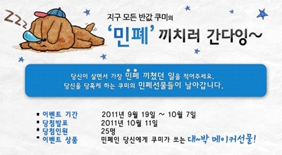 '민폐 이벤트'는 쿠미(www.coome.co.kr)에 회원 가입 후 이벤트 게시판에 댓글로 '지금껏 살아오면서 가장 민폐를 끼쳤던 일'을 적으면 자동 응모된다.