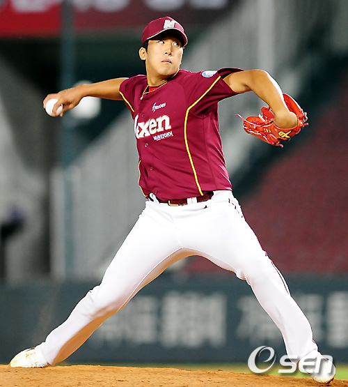 [OSEN=잠실 ,백승철 인턴기자] 21일 오후 서울 잠실구장에서 열린 '2011 롯데카드 프로야구' LG 트윈스와 넥센 히어로즈의 경기, 8회말 타자에서 투수로 전향한 넥센 장영석이 첫 등판에서 역투하고 있다.