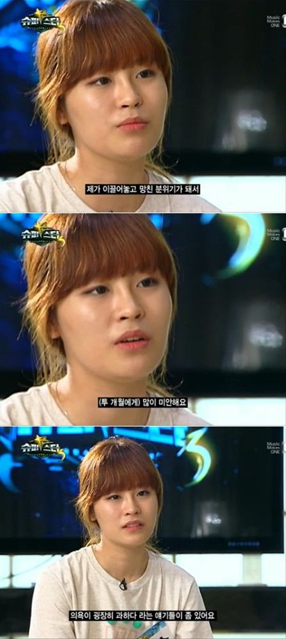 23일 오후 방송된 '슈스케3'에서는 슈퍼위크가 전파를 탔다. 라이벌 매치로 진행된 이날 방송에서 신지수는 투개월과 함께 무대를 선보였지만, 좋지 않은 목 상태 탓에 탈락의 고배를 마셨다.
