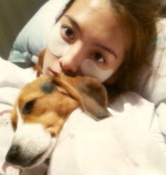 그룹 카라의 멤버 강지영이 애완견과 함께 인증샷을 공개했다.