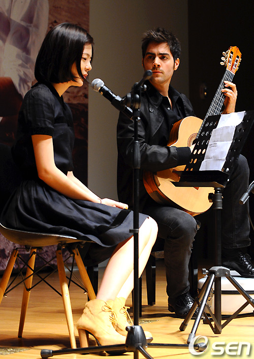 이날 행사에는 가수 장재인이 가창자로 참석해 밀로쉬의 기타에 맞춰 노래를 불렀다.