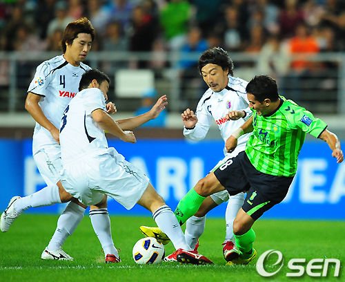 전반 전북 에닝요가 세레소 선수들과 볼다툼을 하고 있다./ rumi@osen.co.kr