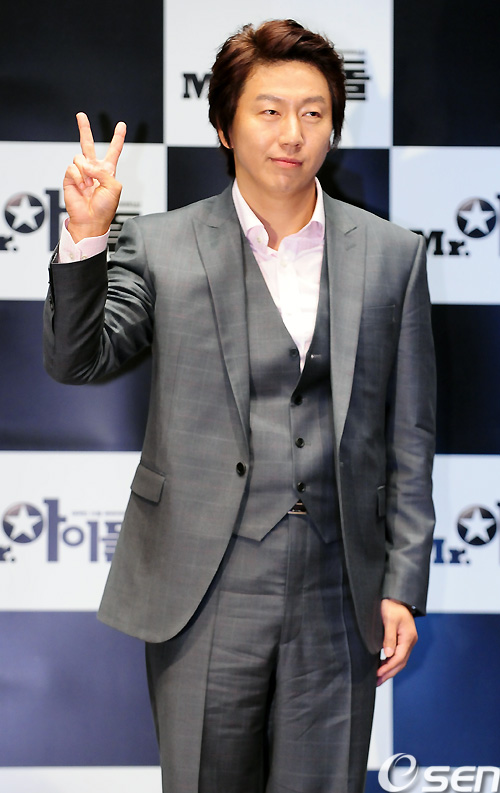 [OSEN= 백승철 인턴기자] 28일 오후 서울 건대입구 롯데시네마에서 열린 영화 'Mr.아이돌' 제작보고회에서 김수로가 포토타임을 갖고 있다.