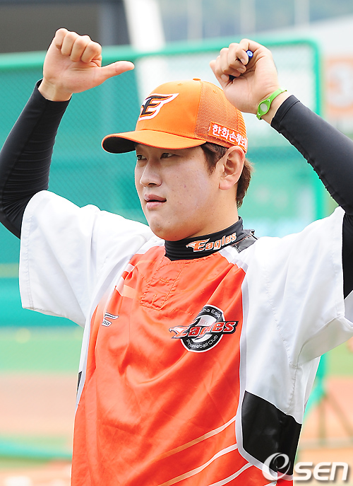 한화 양훈이 얼굴에 썬크림을 잔뜩 바르고 몸을 풀고 있다있다./ rumi@osen.co.kr