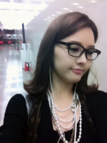 공개된 사진 속에 박은지 캐스터는 검은 뿔테와 진주 목걸이로 한껏 멋을 냈다.