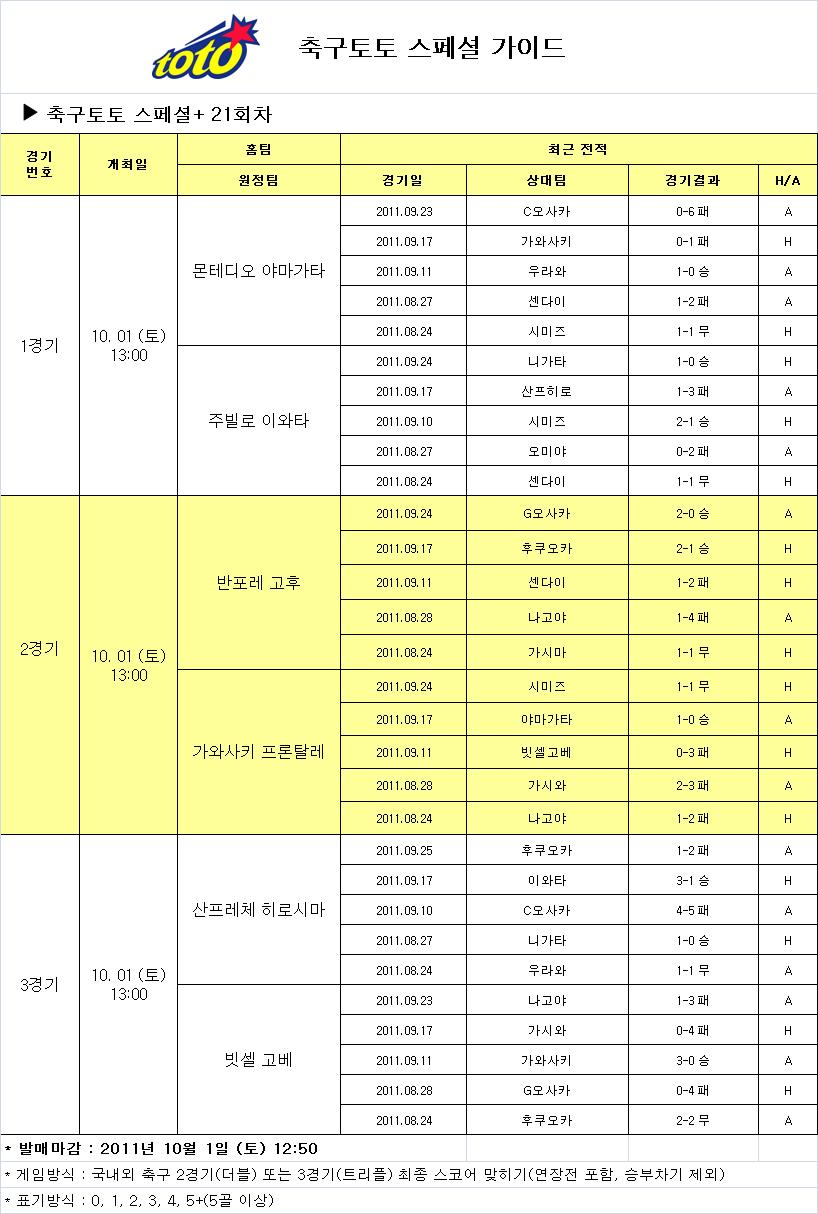 축구토토 스페셜플러스는 지정된 3경기의 최종 스코어를 알아맞히는 게임으로, 1-2번 경기 결과만 예상하는 더블과 3경기 결과를 모두 맞히는 트리플로 나뉜다. 경기 별 최종 스코어는 0•1•2•3•4•5+(5골 이상)등 여섯 가지 중 하나를 골라 표기하면 된다. 이번 축구토토 스페셜플러스 21회차는 내달 1일 오후 12시 50분에 발매가 마감되며, 경기가 모두 종료된 후 결과가 발표된다.