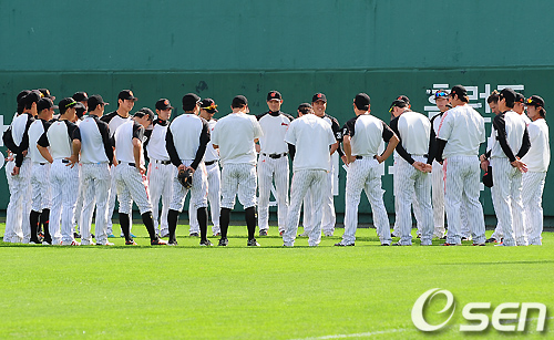 훈련 전 롯데 선수들이 그라운드 위에서 각오를 다지고 있다./ rumi@osen.co.kr