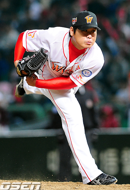 [OSEN=인천 ,백승철 인턴기자] 30일 오후 인천 문학구장에서 열린 '2011 롯데카드 프로야구' SK 와이번스와 삼성 라이온즈의 경기, 4회초 SK 선발 송은범이 내려오고 교체된 이승호가 역투하고 있다.