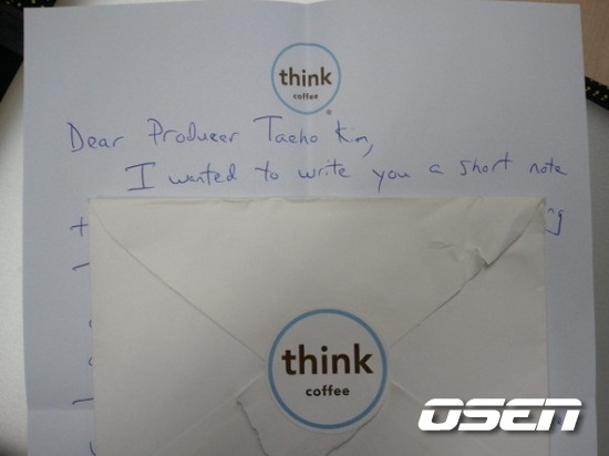 MBC '무한도전'의 김태호 PD가 뉴욕의 '띵크커피' 사장이 전달한 자필 편지를 공개했다.
