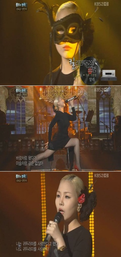 KBS 2TV '자유선언 토요일-불후의 명곡2(이하 불후2)'의 알리가 조용필의 '킬리만자로의 표범'을 파격적으로 편곡해 첫 우승을 차지했다.