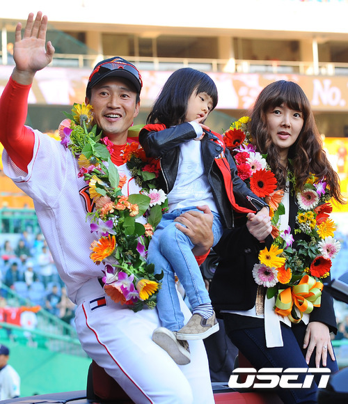 김재현은 '울 것 같은가'라는 질문에 "눈물이 많은 편이 아니라 그렇지 않을 것 같다"면서 "은퇴식을 몇 번 한 것 같다. 한국시리즈가 사실상 은퇴경기였고 지난 6월에도 두 번이나 기회가 있었다. 야구를 계속하고 있어서 은퇴식이 실감나지 않는다"고 웃었다.
