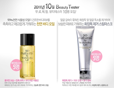 쏘내추럴(www.sonatural.co.kr)에서 홈페이지 회원을 대상으로 10월 신제품 뷰티 테스터를 모집한다. 이번 뷰티 테스터는 고농축 천연 오일 ‘인리치드 바디 트리트먼트 오일’과 화장독 제거 마스크 ‘셀프 디톡스 히팅 마스크’ 중 선택해서 응모할 수 있다.