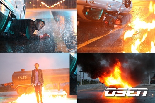 8차선 도로를 통제, 장장 36시간에 걸쳐 촬영된 ‘뱀파이어 검사’의 유조차 폭발씬에 관심이 쏠리고 있다.