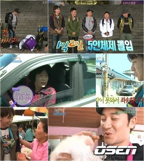이날 '1박2일'은 강호동 없이 진행됐다. 5명의 멤버들은 "더 힘내서 열심히 하자"며 파이팅을 외쳤지만, 강호동의 유쾌한 진행력과 괴성(?)이 빠진 '1박2일'은 다소의 아쉬움을 자아내기도 했다.