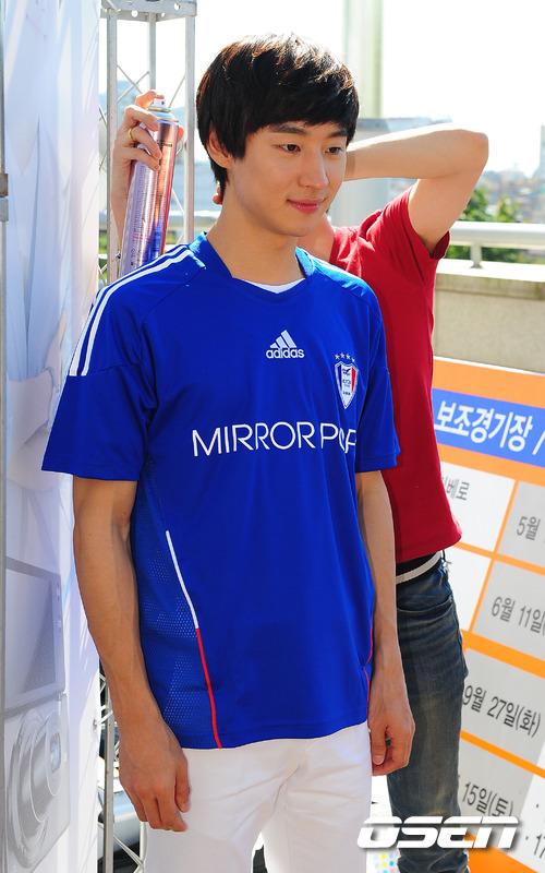 3일 오후 수원 월드컵경기장에서 현대오일뱅크 K리그 2011 수원 삼성과 FC 서울의 27R 경기가 열릴 예정인 가운데 경기 전 ‘고지전’을 통해 차세대 훈남으로 떠오른 배우 이제훈이 팬사인회를 가졌다. 이제훈이 팬 사인전 헤어를 손보고 있다.