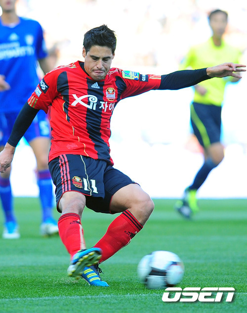 3일 오후 수원 월드컵경기장에서 열린 현대오일뱅크 K리그 2011 수원 삼성과 FC 서울의 27R 경기에서 전반 서울 몰리나가 강슛을 날리고 있다.