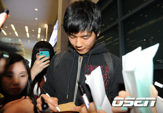 아스널 박주영과 셀틱 기성용이 7일 열릴 폴란드와의 친선경기와 11일 월드컵 아시아지역 3차예선 아랍에미리트연합(UAE)과의 경기에 나서기 위해 3일 오후 인천국제공항을 통해 입국했다. 기성용이 팬들에게 사인을 해주고 있다.