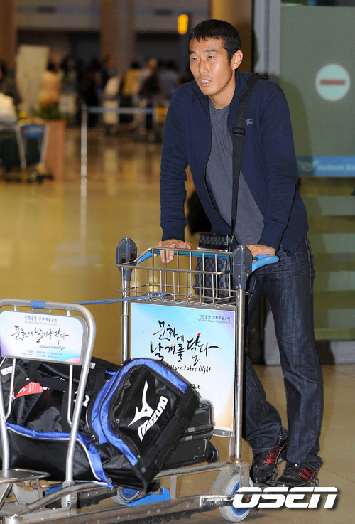 베갈타 센다이 조병국이 7일 열릴 폴란드와의 친선경기와 11일 월드컵 아시아지역 3차예선 아랍에미리트연합(UAE)과의 경기에 나서기 위해 3일 오후 인천국제공항을 통해 입국했다. 조병국이 입국장을 빠져나가고 있다.