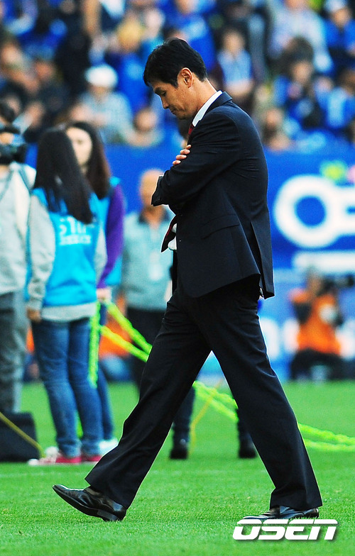 경기를 마치고 서울 최용수 감독 대행이 고개를 숙인채 퇴장하고 있다.