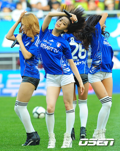 씨스타가 그라운드 위에서 하프타임 축하공연을 펼치고 있다.