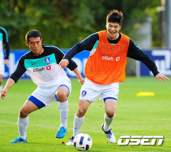 '아버지의 이름으로'. 조광래 감독이 이끄는 대표팀이 지난 4일 파주 NFC(국가대표팀 트레이닝센터)에 모여 훈련을 시작했다. 대표팀은 오는 7일 서울월드컵경기장에서 폴란드와 친선경기를 치르고 11일 수원월드컵경기장에서 UAE와 2014 브라질월드컵 3차예선 3차전을 치른다. 조 감독은 이번 경기를 앞두고 베테랑 수비수 조병국(30, 베갈타 센다이)를 선발했다. 이례적이라 할 수 있다. 한때 대형 수비수로 조명을 받았지만 부상 등의 이유로 사실상 잊혀졌던 존재였다. 그러나 수비 안정을 위한 조광래 감독의 연구는 조병국까지 연결됐다. 조병국에 대해 조광래 감독은 "센다이가 J리그에서 최소실점을 기록하고 있는데 그 수비를 조병국이 잘 이끌고 있다"고 평가하며 큰 기대감을 표시했다. 2010년 남아공 월드컵 지역예선 당시 한 차례 발탁된 이후 한동안 외면을 받았던 조병국은 소속팀 베갈타 센다이에서 좋은 활약을 발판으로 3년 6개월 여 만에 대표팀 유니폼을 입게 됐다. 당연히 그로서는 이번 대표팀 소집이 남다를 수밖에 없다. "어렵게 잡은 기회를 꼭 살리고 싶다"는 간절한 소망을 가지고 있는 그는 이번 소집에 또다른 의미를 부여하고 있다. 일찍 결혼해 올 해 초등학생이 된 아들(준호)이 국가대표가 무엇인지 알게 됐기 때문. 이번에 조병국이 국가대표가 됐다는 말에 가장 기뻐했던 사람은 아들 준호 군이었엇다. 일본에서 학교를 다니고 있는 준호 군은 한국으로 떠나는 아빠에게 "아빠가 국가대표가 된 것이 너무 기쁘다. 경기서도 좋은 모습을 보였으면 좋겠다"라면서 화이팅을 외쳤다. 조병국도 아들의 응원에 더욱 힘을 내고 있는 상황. 평소와는 다른 다짐을 하고 있는 이유도 아들과 가족들의 응원을 받고 있기 때문이다. 조광래호에 첫 승선한 조병국은 중앙 수비수인 이정수(31, 알 사드), 홍정호(22, 제주 유나이티드), 곽태휘(30, 울산 현대), 이재성(23, 울산 현대)과 주전 경쟁을 펼쳐야 한다. 하지만 다시 태극마크를 달게 된 조병국은 누구보다 의지가 강력하다. 조병국의 의지가 다시 주목되는 이유는 바로 '아버지의 이름으로' 태극마크를 달았기 때문이다. 10bird@osen.co.kr [사진] 조병국(왼쪽)이 지난 4일 미니게임서 기성용을 마크하는 모습 / 파주=민경훈 기자 rumi@osen.co.kr