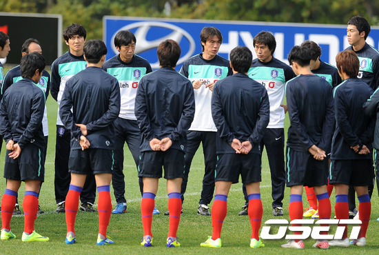 홍명보 감독이 이끄는 올림픽 축구대표팀이 7일 열릴 우즈베키스탄과의 친선 경기와 내달 23일과 27일 카타르, 사우디아라비아와의 최종예선 2,3차전을 앞두고 5일 오전 파주NFC(국가대표팀 트레이닝센터)에서 훈련을 가졌다. 홍명보 감독이 그라운드 위에서 선수들에게 지시를 내리고 있다. 올림픽팀은 7일 우즈베키스탄과의 친선 경기가 A대표팀의 폴란드전과 날짜가 겹쳐 주축 선수들인 윤빛가람(경남), 홍정호(제주) 등을 소집하지 못했다. 김민우(사간 도스), 김현성(대구), 조영철(알비렉스 니가타) 등도 소속팀 일정상 이번 친선전에는 뛸 수 없게 됐다. 홍명보 감독은 변수에 대한 적응력을 키울 계획이다. 내달 해외파 차출이 미지수로 선수구성이 어떻게 될지 모른다. 또한 K리그에서도 6강 플레이오프에 진출한 팀이 있다면 그 팀 소속 선수를 쉽게 불러들일 수 없다. 올림픽 예선은 국제축구연맹(FIFA) 권한 경기가 아니므로 A대표팀과 달리 실질적인 차출 권한이 없다. 갖가지 시나리오에 대비한 탈출구가 필요한 상태. 홍명보 감독의 옥석가리기는 이번에도 계속된다. 한편, 4일 조광래 감독의 A대표팀과 홍명보 감독의 올림픽대표팀이 7일 평가전에 대비, 4일 파주NFC(국가대표팀 트레이닝센터)에 최초로 함께 소집됐다. A대표팀과 올림픽대표팀이 같은 날, 같은 장소에서 릴레이 매치를 벌이는 것은 물론 합숙을 하는 것도 이번이 처음. 조광래호는 7일 오후 8시 서울월드컵경기장에서 월드컵 첫 승 제물 폴란드와 친선경기를 벌인다. 홍명보호는 이에 앞서 오후 5시30분부터 우즈베키스탄과 일전을 치르게 된다. / sunday@osen.co.kr
