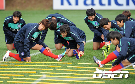 홍명보 감독이 이끄는 올림픽 축구대표팀이 7일 열릴 우즈베키스탄과의 친선 경기와 내달 23일과 27일 카타르, 사우디아라비아와의 최종예선 2,3차전을 앞두고 5일 오전 파주NFC(국가대표팀 트레이닝센터)에서 훈련을 가졌다. 올림픽대표팀 선수들이 몸풀기 훈련을 하고 있다. 올림픽팀은 7일 우즈베키스탄과의 친선 경기가 A대표팀의 폴란드전과 날짜가 겹쳐 주축 선수들인 윤빛가람(경남), 홍정호(제주) 등을 소집하지 못했다. 김민우(사간 도스), 김현성(대구), 조영철(알비렉스 니가타) 등도 소속팀 일정상 이번 친선전에는 뛸 수 없게 됐다. 홍명보 감독은 변수에 대한 적응력을 키울 계획이다. 내달 해외파 차출이 미지수로 선수구성이 어떻게 될지 모른다. 또한 K리그에서도 6강 플레이오프에 진출한 팀이 있다면 그 팀 소속 선수를 쉽게 불러들일 수 없다. 올림픽 예선은 국제축구연맹(FIFA) 권한 경기가 아니므로 A대표팀과 달리 실질적인 차출 권한이 없다. 갖가지 시나리오에 대비한 탈출구가 필요한 상태. 홍명보 감독의 옥석가리기는 이번에도 계속된다. 한편, 4일 조광래 감독의 A대표팀과 홍명보 감독의 올림픽대표팀이 7일 평가전에 대비, 4일 파주NFC(국가대표팀 트레이닝센터)에 최초로 함께 소집됐다. A대표팀과 올림픽대표팀이 같은 날, 같은 장소에서 릴레이 매치를 벌이는 것은 물론 합숙을 하는 것도 이번이 처음. 조광래호는 7일 오후 8시 서울월드컵경기장에서 월드컵 첫 승 제물 폴란드와 친선경기를 벌인다. 홍명보호는 이에 앞서 오후 5시30분부터 우즈베키스탄과 일전을 치르게 된다. / sunday@osen.co.kr