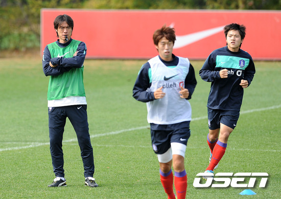 홍명보 감독이 이끄는 올림픽 축구대표팀이 7일 열릴 우즈베키스탄과의 친선 경기와 내달 23일과 27일 카타르, 사우디아라비아와의 최종예선 2,3차전을 앞두고 5일 오전 파주NFC(국가대표팀 트레이닝센터)에서 훈련을 가졌다. 홍명보 감독이 선수들의 훈련을 바라보고 있다. 올림픽팀은 7일 우즈베키스탄과의 친선 경기가 A대표팀의 폴란드전과 날짜가 겹쳐 주축 선수들인 윤빛가람(경남), 홍정호(제주) 등을 소집하지 못했다. 김민우(사간 도스), 김현성(대구), 조영철(알비렉스 니가타) 등도 소속팀 일정상 이번 친선전에는 뛸 수 없게 됐다. 홍명보 감독은 변수에 대한 적응력을 키울 계획이다. 내달 해외파 차출이 미지수로 선수구성이 어떻게 될지 모른다. 또한 K리그에서도 6강 플레이오프에 진출한 팀이 있다면 그 팀 소속 선수를 쉽게 불러들일 수 없다. 올림픽 예선은 국제축구연맹(FIFA) 권한 경기가 아니므로 A대표팀과 달리 실질적인 차출 권한이 없다. 갖가지 시나리오에 대비한 탈출구가 필요한 상태. 홍명보 감독의 옥석가리기는 이번에도 계속된다. 한편, 4일 조광래 감독의 A대표팀과 홍명보 감독의 올림픽대표팀이 7일 평가전에 대비, 4일 파주NFC(국가대표팀 트레이닝센터)에 최초로 함께 소집됐다. A대표팀과 올림픽대표팀이 같은 날, 같은 장소에서 릴레이 매치를 벌이는 것은 물론 합숙을 하는 것도 이번이 처음. 조광래호는 7일 오후 8시 서울월드컵경기장에서 월드컵 첫 승 제물 폴란드와 친선경기를 벌인다. 홍명보호는 이에 앞서 오후 5시30분부터 우즈베키스탄과 일전을 치르게 된다. / sunday@osen.co.kr