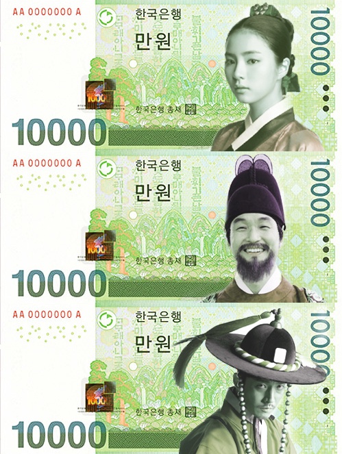 SBS 새 수목드라마 '뿌리깊은 나무'의 주인공들인한석규, 신세경, 장혁이 만원권 지폐 패러디로 웃음을 안긴다. '보스를 지켜라' 후속으로 5일 첫 방송되는 '뿌리깊은 나무'는 한글창제를 둘러싼 비밀을 그린 사극으로, 세종대왕역을 맡은 한석규가 만원권 지폐의 주인공이 되며 진짜 세종대왕으로 변신한 것. '뿌리깊은 나무' 홈페이지의 한 코너 '명대사 다시보기'에서 한 열혈 팬(ID 전하)은 '만원이오'라는 제목으로 "만약, 세종대왕의 얼굴이 뿌리깊은 나무의 등장인물 한석규씨와 똑 닮았다면 현 시대의 만원은 이런 모습!?"이라는 멘트와 함께 인자하게 미소짓는 세종임금역 한석규를 만원권 지폐의 주인공으로 등장시켜 네티즌들의 이목을 사로잡았다. 이어 그는 "그리고, 채윤과 소이로도 만들어본 만원짜리 지폐!!"라며 카리스마 넘치는 채윤역 장혁과 단아하면서도 비밀스런 소이역 신세경도 동시에 만원짜리에 패러디해 웃음을 선사하고 있다. 특히, 장혁은 지난 출연작인 '마이더스'에서 오만원권 지폐의 주인공이 되기도 했는데, 이번 '뿌리깊은 나무'에서는 만원권 지폐의 주인공으로 등장하는 독특한 인연도 생겼다. 제작진은 "이 지폐를 보니 한석규님이 조선시대에 태어났다면 정말 세종임금이 아니셨을까 생각될 정도로 정말 잘 매치되어 놀랐다"라며 "이렇게 패러디지폐를 만들어주신 분과 많이 응원해주시는 많은 분들을 위해서라도 최선을 다해 웰메이드 드라마를 만들겠다"라고 고마워했다. 한편 '뿌리깊은 나무'는 김영현 작가와 박상연 작가, 그리고 장태유 감독이 의기투합한 드라마로 한석규, 장혁, 신세경 외에도 그리고 윤제문, 조진웅, 백윤식, 송중기, 김기범 등이 출연한다. nyc@osen.co.kr