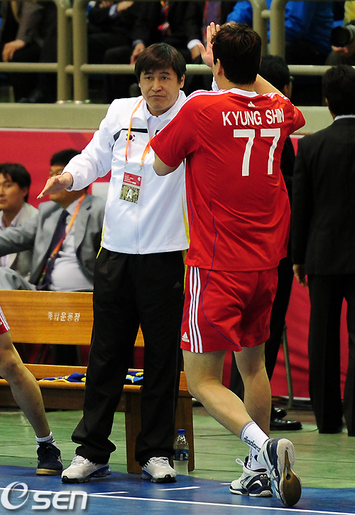 "윤경신만큼 뜨거운 가슴을 가진 사람을 보지 못했다". 최석재(45) 남자핸드볼대표팀 감독은 윤경신(38) 플레잉코치가 고맙다. 선수와 코치로 1인 2역을 묵묵히 해주고 있는 윤경신 코치는 대표팀에서 없어서는 안되는 존재다. 런던올림픽 아시아 예선을 앞둔 남녀 핸드볼 대표팀이 5일 태릉선수촌 오륜관서 출정식을 가졌다. 출정식에는 대한핸드볼협회 정형균 상임부회장, 한정규 부회장과 남녀 대표팀 선수들 전원이 참석했다. 최석재 감독은 윤경신 플레잉코치에 대해 "윤경신만큼 뜨거운 가슴을 가진 사람을 보지 못했다. 그는 국가가 부르면 언제든지 달려오는 선수다"고 말했다. 윤경신 플레잉코치는 평소에 "대표팀이 있었기 때문에 내가 있었다. 태극기를 가슴에 달고 뛸 때가 가장 행복하다"고 말할 정도로 대표팀에 대한 사랑이 크다. 최석재 감독과 윤경신 플레잉코치는 1990년 북경 아시안게임 대표팀서 함께 뛴 인연이 있다. 최 감독은 "윤경신이 급하게 대표팀 경기에 출전해야 할 상황이 있었다. 윤경신이 독일서 뛸 당시인데 자비로 급히 날아와 경기에 뛴 적도 있다"고 회상했다. 한국남자대표팀은 지난 8월 독일과 스위스서 전지 훈련을 가졌다. 윤경신 플레잉코치는 경기 중에는 선수, 경기가 끝나면 코치의 역할을 수행했다. 최 감독은 "윤경신 플레잉코치는 쉴 틈이 없었다. 경기가 끝나면 코치로서 역할을 했다. 전지 훈련을 가서 선수들의 간식을 챙기기 위해 다니는 경우도 있었다. 고맙기도 하고 한편으로는 마음이 아팠다. 윤경신은 한국 핸드볼 역사에 남을 선수다"며 칭찬을 아끼지 않았다. 윤경신 플레잉코치는 "그동안 선수들이 매우 열심히 해줬다. 특히 수비와 체력적인 부문에서는 다른 팀에게 결코 뒤지지 않는다. 개인적으로는 체력이 되는 데까지 한국팀을 위해 최선을 다하겠다"고 각오를 전했다. 남자핸드볼대표팀 뒤에는 '살아있는 핸드볼의 전설' 윤경신이 서있다. ball@osen.co.kr [사진]최석재 감독-윤경신 플레잉코치.