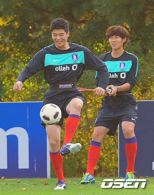 조광래 감독이 이끄는 월드컵 축구대표팀이 7일 열릴 폴란드와의 친선경기와 11일 월드컵 아시아지역 3차예선 아랍에미리트연합(UAE)과의 경기를 앞두고 파주NFC(국가대표팀 트레이닝센터)에서 5일 오후 훈련중 기성용과 손흥민이 환하게 웃고 있다. 조광래 감독은 이번 소집 명단에서 다시 한 번 변화를 꾀했다. 논란 속에서 이동국을 추가발탁하고 서정진 이승기 이현승 등을 새롭게 발굴한 것. 여기에 곽태휘와 조병국을 발탁해 수비의 안정을 꾀했다. 잦은 부상으로 대표팀과 인연이 멀어졌던 손흥민의 복귀도 눈에 띈다. 발목을 다쳐 지난 3차 예선 1~2차전에 합류하지 못했던 손흥민은 최근 부상에서 회복하며 다시 조광래 감독의 부름을 받았다. 한편 성남 복귀전에서 부상을 당한 김정우는 이번 소집에서 제외됐다. 조광래호는 생각의 속도와 패싱 위주의 전술 구사, 압박 등 기존의 틀은 유지할 예정이다. 다만 이동국의 추가 발탁으로 공격 옵션이 다양해졌다. 상황에 따라 원톱에서 투톱으로 변화를 줄 수 있다. 조 감독은 선수들의 컨디션을 종합적으로 점검한 후 시스템 변화를 집중 연마할 예정이다. 한편, 4일 조광래 감독의 A대표팀과 홍명보 감독의 올림픽대표팀이 7일 평가전에 대비, 4일 파주NFC(국가대표팀 트레이닝센터)에 최초로 함께 소집됐다. A대표팀과 올림픽대표팀이 같은 날, 같은 장소에서 릴레이 매치를 벌이는 것은 물론 합숙을 하는 것도 이번이 처음. 조광래호는 7일 오후 8시 서울월드컵경기장에서 월드컵 첫 승 제물 폴란드와 친선경기를 벌인다. 홍명보호는 이에 앞서 오후 5시30분부터 우즈베키스탄과 일전을 치르게 된다. / rumi@osen.co.kr