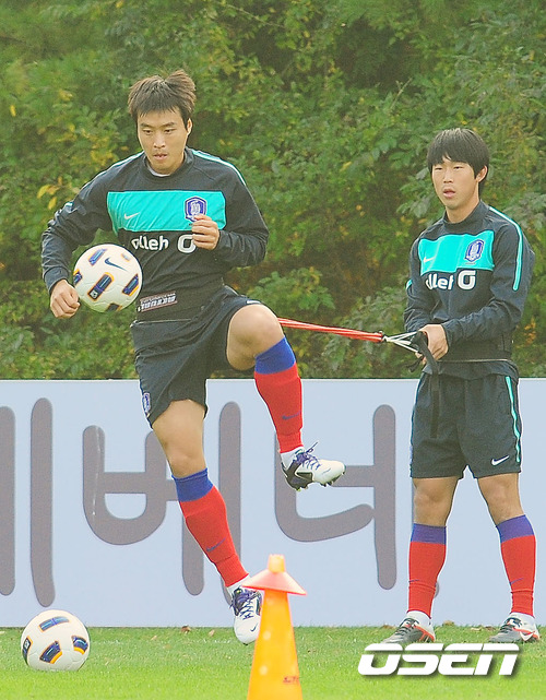 조광래 감독이 이끄는 월드컵 축구대표팀이 7일 열릴 폴란드와의 친선경기와 11일 월드컵 아시아지역 3차예선 아랍에미리트연합(UAE)과의 경기를 앞두고 파주NFC(국가대표팀 트레이닝센터)에서 5일 오후 이동국이 밴드를 장착한체 훈련을 하고 있다. 조광래 감독은 이번 소집 명단에서 다시 한 번 변화를 꾀했다. 논란 속에서 이동국을 추가발탁하고 서정진 이승기 이현승 등을 새롭게 발굴한 것. 여기에 곽태휘와 조병국을 발탁해 수비의 안정을 꾀했다. 잦은 부상으로 대표팀과 인연이 멀어졌던 손흥민의 복귀도 눈에 띈다. 발목을 다쳐 지난 3차 예선 1~2차전에 합류하지 못했던 손흥민은 최근 부상에서 회복하며 다시 조광래 감독의 부름을 받았다. 한편 성남 복귀전에서 부상을 당한 김정우는 이번 소집에서 제외됐다. 조광래호는 생각의 속도와 패싱 위주의 전술 구사, 압박 등 기존의 틀은 유지할 예정이다. 다만 이동국의 추가 발탁으로 공격 옵션이 다양해졌다. 상황에 따라 원톱에서 투톱으로 변화를 줄 수 있다. 조 감독은 선수들의 컨디션을 종합적으로 점검한 후 시스템 변화를 집중 연마할 예정이다. 한편, 4일 조광래 감독의 A대표팀과 홍명보 감독의 올림픽대표팀이 7일 평가전에 대비, 4일 파주NFC(국가대표팀 트레이닝센터)에 최초로 함께 소집됐다. A대표팀과 올림픽대표팀이 같은 날, 같은 장소에서 릴레이 매치를 벌이는 것은 물론 합숙을 하는 것도 이번이 처음. 조광래호는 7일 오후 8시 서울월드컵경기장에서 월드컵 첫 승 제물 폴란드와 친선경기를 벌인다. 홍명보호는 이에 앞서 오후 5시30분부터 우즈베키스탄과 일전을 치르게 된다. / rumi@osen.co.kr