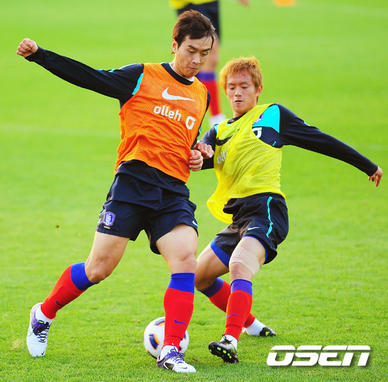 조광래 감독이 이끄는 월드컵 축구대표팀이 7일 열릴 폴란드와의 친선경기와 11일 월드컵 아시아지역 3차예선 아랍에미리트연합(UAE)과의 경기를 앞두고 파주NFC(국가대표팀 트레이닝센터)에서 5일 오후 훈련에서 미니게임중 홍철이 이동국의 볼을 뺏고 있다. 조광래 감독은 이번 소집 명단에서 다시 한 번 변화를 꾀했다. 논란 속에서 이동국을 추가발탁하고 서정진 이승기 이현승 등을 새롭게 발굴한 것. 여기에 곽태휘와 조병국을 발탁해 수비의 안정을 꾀했다. 잦은 부상으로 대표팀과 인연이 멀어졌던 손흥민의 복귀도 눈에 띈다. 발목을 다쳐 지난 3차 예선 1~2차전에 합류하지 못했던 손흥민은 최근 부상에서 회복하며 다시 조광래 감독의 부름을 받았다. 한편 성남 복귀전에서 부상을 당한 김정우는 이번 소집에서 제외됐다. 조광래호는 생각의 속도와 패싱 위주의 전술 구사, 압박 등 기존의 틀은 유지할 예정이다. 다만 이동국의 추가 발탁으로 공격 옵션이 다양해졌다. 상황에 따라 원톱에서 투톱으로 변화를 줄 수 있다. 조 감독은 선수들의 컨디션을 종합적으로 점검한 후 시스템 변화를 집중 연마할 예정이다. 한편, 4일 조광래 감독의 A대표팀과 홍명보 감독의 올림픽대표팀이 7일 평가전에 대비, 4일 파주NFC(국가대표팀 트레이닝센터)에 최초로 함께 소집됐다. A대표팀과 올림픽대표팀이 같은 날, 같은 장소에서 릴레이 매치를 벌이는 것은 물론 합숙을 하는 것도 이번이 처음. 조광래호는 7일 오후 8시 서울월드컵경기장에서 월드컵 첫 승 제물 폴란드와 친선경기를 벌인다. 홍명보호는 이에 앞서 오후 5시30분부터 우즈베키스탄과 일전을 치르게 된다. / rumi@osen.co.kr