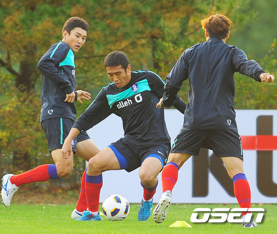 조광래 감독이 이끄는 월드컵 축구대표팀이 7일 열릴 폴란드와의 친선경기와 11일 월드컵 아시아지역 3차예선 아랍에미리트연합(UAE)과의 경기를 앞두고 파주NFC(국가대표팀 트레이닝센터)에서 5일 오후 훈련에서 미니게임중 조병국이 이정수, 이근호 사이에서 볼을 빼내고 있다. 조광래 감독은 이번 소집 명단에서 다시 한 번 변화를 꾀했다. 논란 속에서 이동국을 추가발탁하고 서정진 이승기 이현승 등을 새롭게 발굴한 것. 여기에 곽태휘와 조병국을 발탁해 수비의 안정을 꾀했다. 잦은 부상으로 대표팀과 인연이 멀어졌던 손흥민의 복귀도 눈에 띈다. 발목을 다쳐 지난 3차 예선 1~2차전에 합류하지 못했던 손흥민은 최근 부상에서 회복하며 다시 조광래 감독의 부름을 받았다. 한편 성남 복귀전에서 부상을 당한 김정우는 이번 소집에서 제외됐다. 조광래호는 생각의 속도와 패싱 위주의 전술 구사, 압박 등 기존의 틀은 유지할 예정이다. 다만 이동국의 추가 발탁으로 공격 옵션이 다양해졌다. 상황에 따라 원톱에서 투톱으로 변화를 줄 수 있다. 조 감독은 선수들의 컨디션을 종합적으로 점검한 후 시스템 변화를 집중 연마할 예정이다. 한편, 4일 조광래 감독의 A대표팀과 홍명보 감독의 올림픽대표팀이 7일 평가전에 대비, 4일 파주NFC(국가대표팀 트레이닝센터)에 최초로 함께 소집됐다. A대표팀과 올림픽대표팀이 같은 날, 같은 장소에서 릴레이 매치를 벌이는 것은 물론 합숙을 하는 것도 이번이 처음. 조광래호는 7일 오후 8시 서울월드컵경기장에서 월드컵 첫 승 제물 폴란드와 친선경기를 벌인다. 홍명보호는 이에 앞서 오후 5시30분부터 우즈베키스탄과 일전을 치르게 된다. / rumi@osen.co.kr