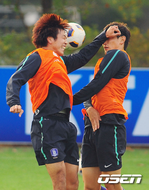 조광래 감독이 이끄는 월드컵 축구대표팀이 7일 열릴 폴란드와의 친선경기와 11일 월드컵 아시아지역 3차예선 아랍에미리트연합(UAE)과의 경기를 앞두고 파주NFC(국가대표팀 트레이닝센터)에서 5일 오후 훈련에서 미니게임중 홍정호과 지동원과 공중볼 다툼을 하고 있다. 조광래 감독은 이번 소집 명단에서 다시 한 번 변화를 꾀했다. 논란 속에서 이동국을 추가발탁하고 서정진 이승기 이현승 등을 새롭게 발굴한 것. 여기에 곽태휘와 조병국을 발탁해 수비의 안정을 꾀했다. 잦은 부상으로 대표팀과 인연이 멀어졌던 손흥민의 복귀도 눈에 띈다. 발목을 다쳐 지난 3차 예선 1~2차전에 합류하지 못했던 손흥민은 최근 부상에서 회복하며 다시 조광래 감독의 부름을 받았다. 한편 성남 복귀전에서 부상을 당한 김정우는 이번 소집에서 제외됐다. 조광래호는 생각의 속도와 패싱 위주의 전술 구사, 압박 등 기존의 틀은 유지할 예정이다. 다만 이동국의 추가 발탁으로 공격 옵션이 다양해졌다. 상황에 따라 원톱에서 투톱으로 변화를 줄 수 있다. 조 감독은 선수들의 컨디션을 종합적으로 점검한 후 시스템 변화를 집중 연마할 예정이다. 한편, 4일 조광래 감독의 A대표팀과 홍명보 감독의 올림픽대표팀이 7일 평가전에 대비, 4일 파주NFC(국가대표팀 트레이닝센터)에 최초로 함께 소집됐다. A대표팀과 올림픽대표팀이 같은 날, 같은 장소에서 릴레이 매치를 벌이는 것은 물론 합숙을 하는 것도 이번이 처음. 조광래호는 7일 오후 8시 서울월드컵경기장에서 월드컵 첫 승 제물 폴란드와 친선경기를 벌인다. 홍명보호는 이에 앞서 오후 5시30분부터 우즈베키스탄과 일전을 치르게 된다. / rumi@osen.co.kr